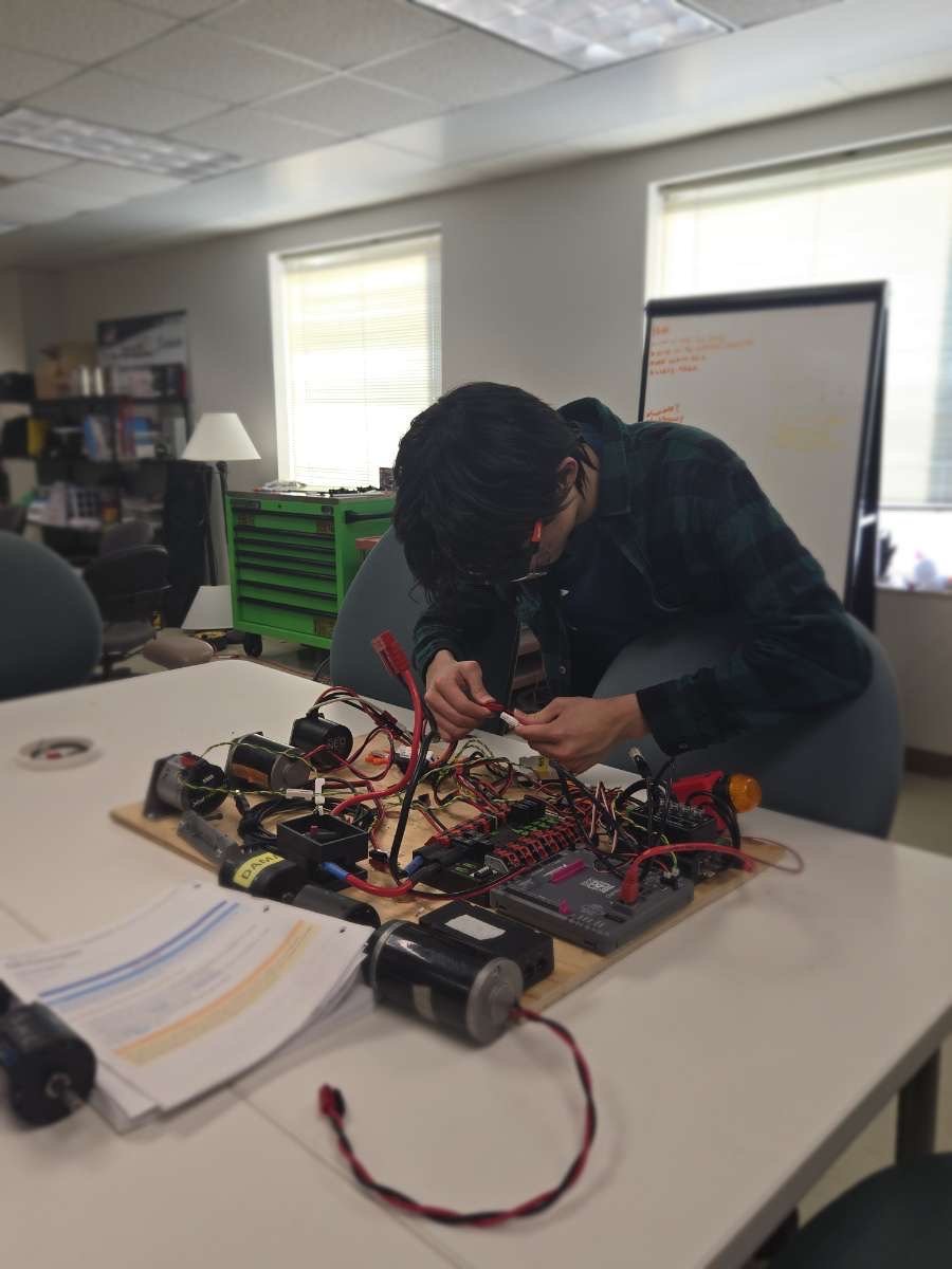 The rookies have completed building and attaching electrical components to the kitbot. They were able to have the opportunity to drive it on our practice field. They were successfully able to score fuel in the hub.